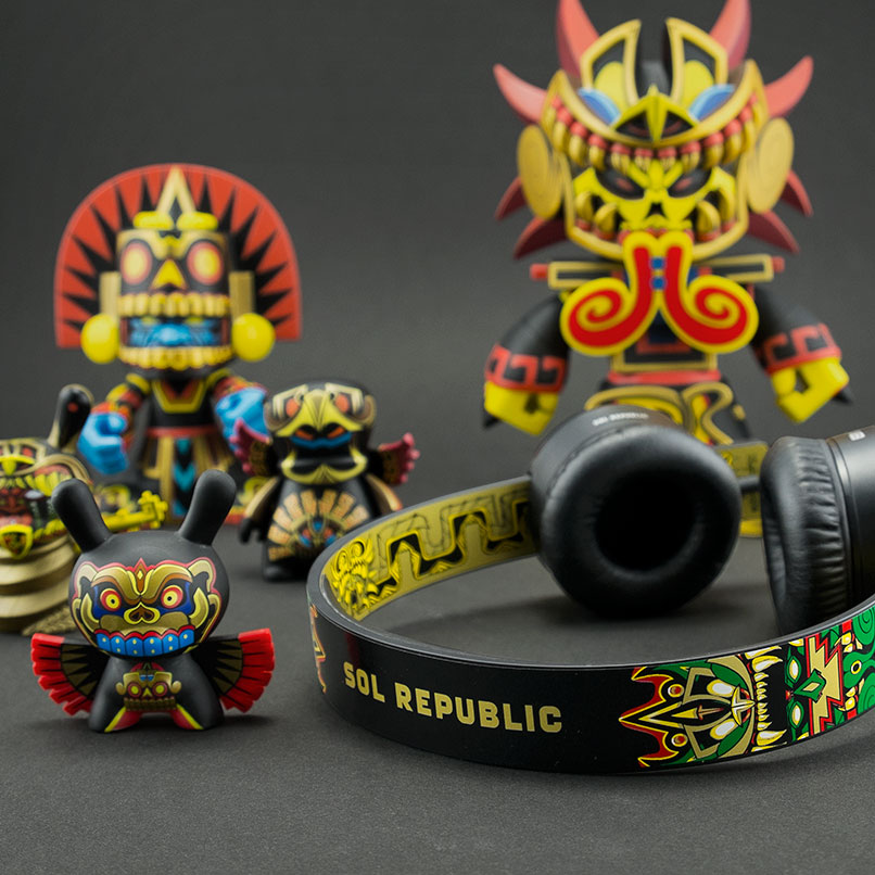 Super talented Jesse Hernandez teamed up with headphone maker Sol Republic to create a limited edition headband that allows you to customize your already existing pair of headphones! The “Urban Aztec” headband is a crazy detailed totem, Fire gods, Feathered Serpents, and Aztec gold art piece that wraps around your current pair of Sol Republic Headphones and they came out sick!! There’s nothing better than having a custom pair of dope headphones so I’m all for these types of collaborations.