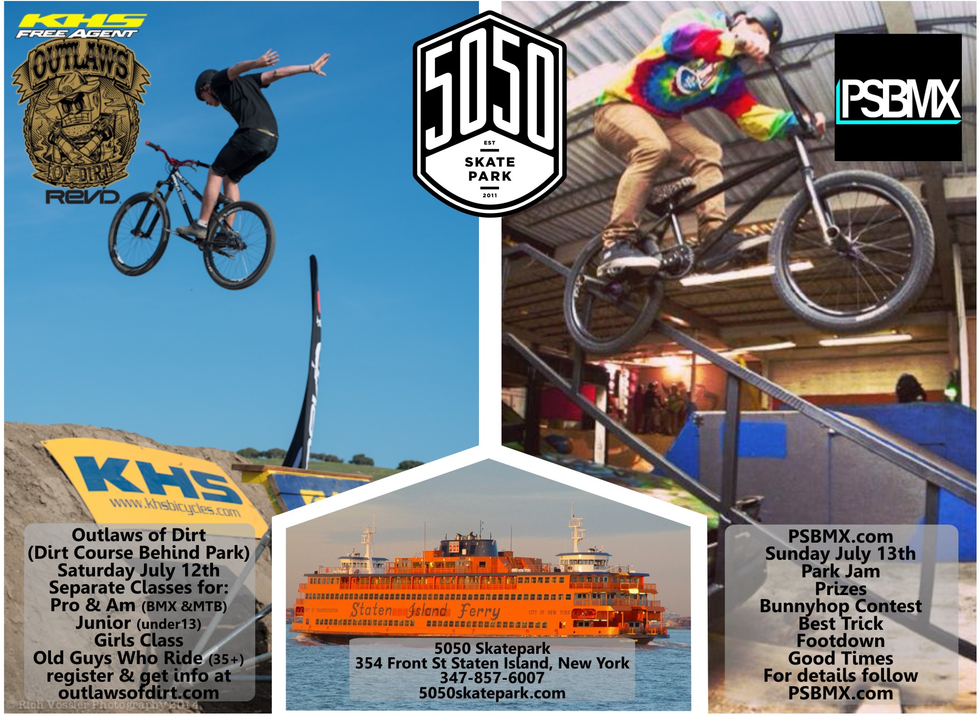 Our friends at PlusSizeBMX are bringing their awesome KHS/Freeagent Outlaws of Dirt, National dirt jumping series to the infamous 5050 skatepark in Staten Island July 12-13th!! Check out the press release below!