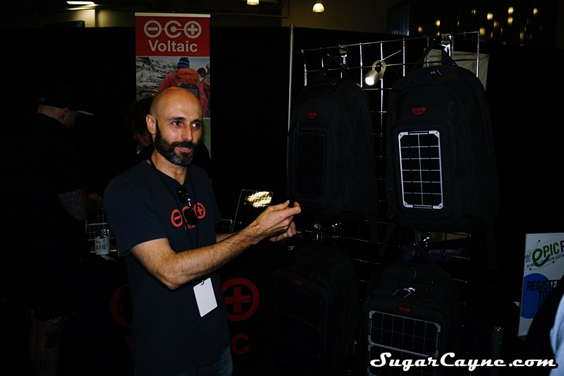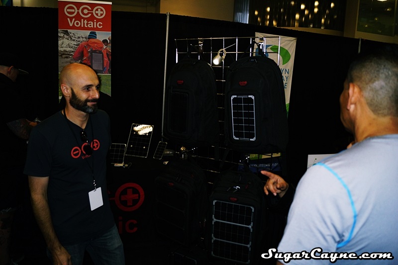 Shayne McQuade owner of Voltaic Systems had a cool booth setup at Bike Expo New York promoting his brand of solar panels, solar backpacks, bags and portable solar panels. Voltaic has a solar panel and bag for just about every need and they come in a lot of sizes. Shayne showed me a lot of the different ways you can use the panels. I definitely need to get me one!