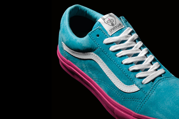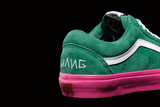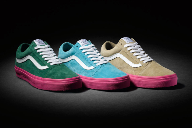 Odd Future’s Tyler The Creator is making it happen for the brand as he teams up with Vans Syndicate to give the classic Old Skool silhouette a Pro “S” flavor with Ultracush impact sock liners and Duracap reinforced uppers, Nice!!. These bad boys are offered in three color schemes of blue, wheat and green, they all feature custom Golf Wang artwork on the tongue and footbed and it all rests on a pink sole which may or may not be a deal breaker for some. I would have went with a white sole…a least as an option. These Odd Future Old Skool Pro “S” will be available at select Vans Syndicate retailers beginning July 19…Now you know! 😉
