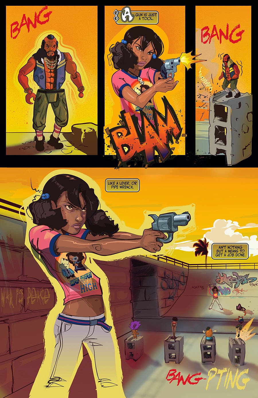 I just saw this amazing cover art for the Top Cow comic book series “Genius”, The illustration above is from issue#3. I’m loving the art done by Afua Richardson, the cover looks amazing and the artwork done in the issue is awesome too. I grabbed a few images from the preview but check out GhettoManga.com for even more preview images.