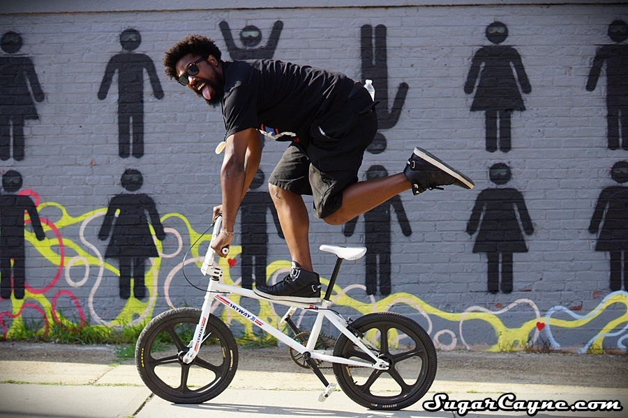 Supa dope emcee and #SpittinInDaWip alumni K.Gaines made a special cameo in the upcoming M-Tri & Leecy T music video called “Trading Places” and after the video shoot he wanted to get a shot on my Skyway too. You know Gaines had to show off his BMX skillz for the shoot lol 🙂 He’s also slated to be on an upcoming episode of The BMX Challenge, stay tuned for that. HipHop Loves BMX!!