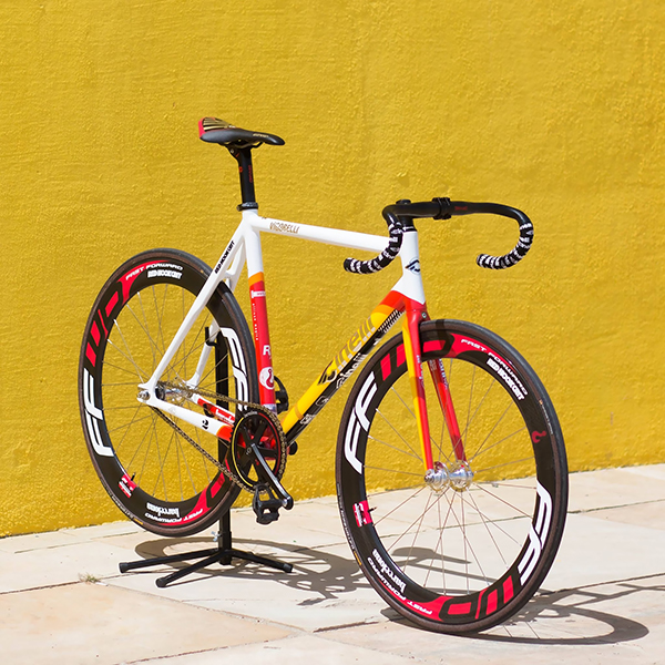 This supa dope compete Red Hook Criterium x Cinelli Vigorelli prize bike designed by Jonah Birns makes me wanna get a road bike and enter the comp!! I’m loving the colorway on this bike. The mix of white,red, yellow and orange on the frame is so dope. The bike also features wheels by FFWD Wheels, saddle by Selle San Marco, and cranks by Mquadro. Bike assembly by Barceloneta Bikes. NICE!!!