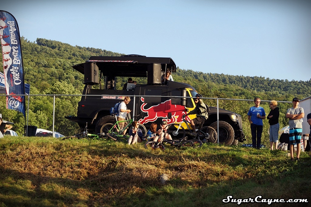 While I was at the UCI Mountain Bike World Cup at Windham Mountain, NY, the guys from Red Bull told me to come down and checkout the ‘Ride The Plank” challenge event they were doing at the pond by the parking area. The Ride The Plank challenge is a event where riders attempt to cross a pond on wooden planks supported only by inflatable tubes floating on water. The tricky part is the tubes move around while your trying to keep your balance, once you lose it it’s pretty much a wrap lol! It was fun to watch all the riders attempt to get across the pond and fall in lol. One rider got pretty far but no one made it. I got a few funny clips from the event.