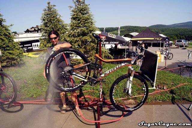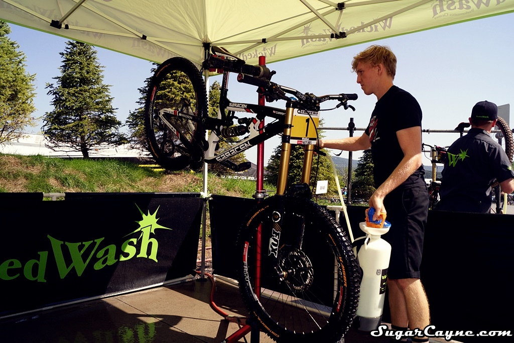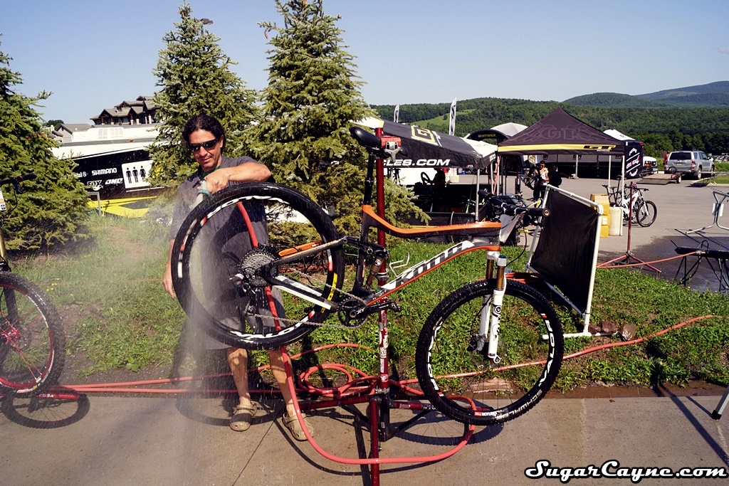 One of the coolest things I saw at the UCI Mountain Bike World Cup in Windham was this cool Bike Wash section done by Wicked Wash. What was even cool was how they were washing the bikes. Wicked Wash is an awesome formula designed to clean the muddiest and dirtiest bikes without attacking grease, oil, or harming delicate parts. You simply spray Wicked Washâ„¢ on and hose it off for an amazing results. Wicked Wash Director Of Athlete Management Chris M. shows me the simple step by step process of how to clean your bike using Wicked Wash. I even got by bike cleaned by