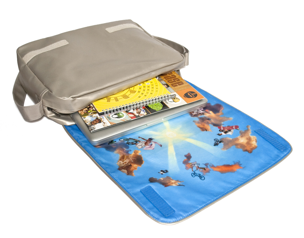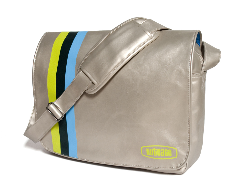 The folks at Nutcase Helmets announced a limited-edition messenger bag inspired by the art made for the ‘Artists’ Series of helmets and their 2015 line of Gen3 helmets. The cool looking Nutcase Varsity Stripe Messenger Bag features the same stripes on their upcoming 2015 Varsity Stripe helmet on the bag’s stylish silver exterior. The bag also features an original Cloud Nine helmet art show picture piece done by artist Todd Standish on the interior flap.