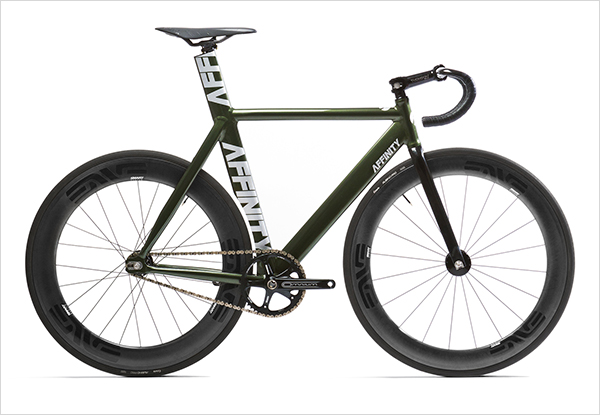 I’m diggin this McQueen Green Kissena Level 1 Complete track bike by Brooklyn Based Affinity Cycles. I really like the big lettering between the seat tube and the seat post tube. It’s a simple and dope look, Nice!!
