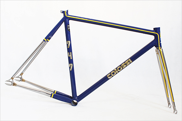 The latest custom creation by Colossi is this dope custom track frame featuring KVA MS3 stainless steel tubing and a stainless steel fork. What really makes this frame so dope is that blue and yellow colorway! I love the yellow stripe that goes from the chome forks to the seat tube, the chrome decals with the yellow outline also give it nice retro feel. Some yellow mags would look so dope on this bike, I would love to see what this bike is gonna look like built up. Check out more photos of the frame HERE
