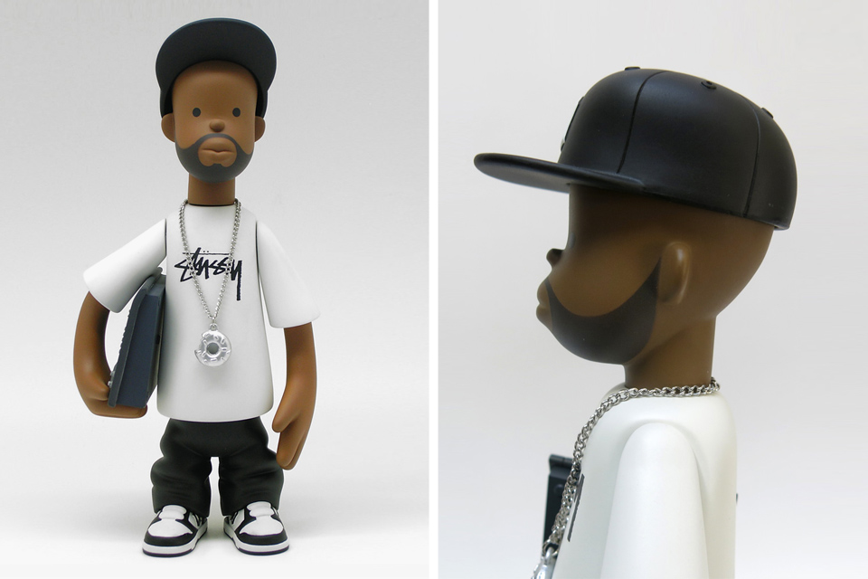 J Dilla‘s estate finally released the tribute vinyl figure of the late, great hip-hop production master! This 7.5″ tall vinyl toy was made in collaboration with Stüssy. The piece was conceived and rendered by Detroit artist Sintex, designed and sculpted by Seoul-based toy artist P2PL. They laced the figure with Stüssy’s logo which is officially licensed of course, removable hat, Donuts chain and MPC sampler and it’s only limited to 2,000 pieces. Go cop one now, they’re only $60 and the announcement was made on Monday ya’ll!