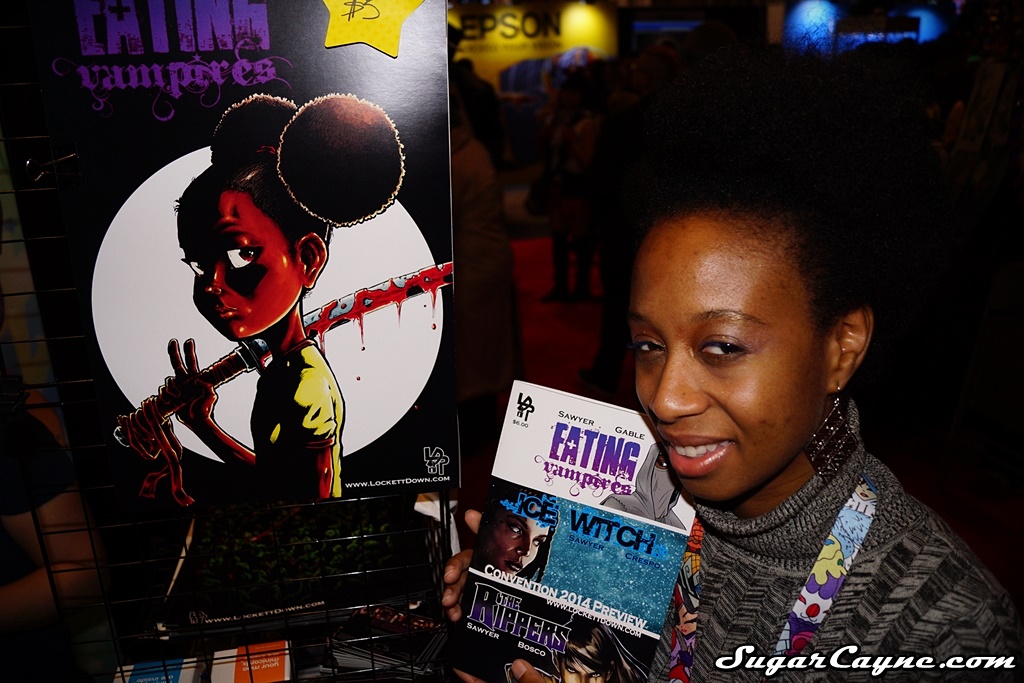 Regine Sawyer of Lockett Down Productions had a booth setup at the New York Comic Con this year. She had her comic book titles Ice Witch, The Rippers and Eating Vampires on display and she gave me the update on those comics. She also had some baked good for sale and they were really tasty. Now I’ve been interviewing Regine for years and I never knew she studied to be a chef or that she worked in the food industry..that’s wassup! I’m always finding out something new lol.