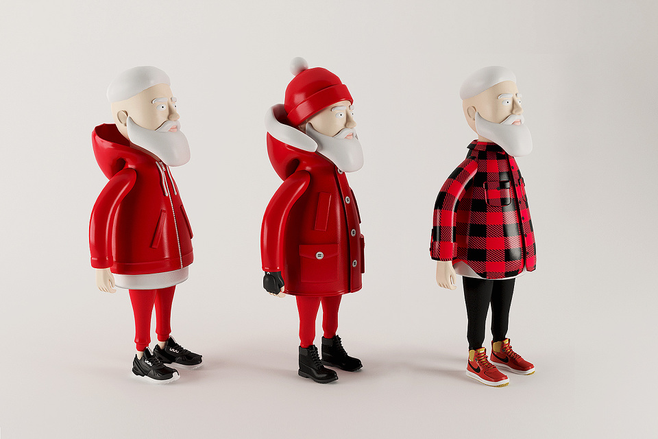 Simeon Georgiev is back with another batch of banging designer figures for the Christmas. This new set laced Santa with three dope, unique streetwear outfits. Each outfit looks like something a modern day Santa would rock with dropping off his gifts or just chilling with Ms clause and the elfs. Of course you know Santa’s gear has to have a lot of red in it so he’s got the red hoodie and matching joggers with a pair of the recently released adidas Originals Tubular. He’s also sporting the Woolrich Arctic Parka, with matching trousers and beanie, fingerless gloves and Timberland 6-inch triple black boots to complete the look in another outfit. And the last outfit of the series, Santa’s rocking that lumberjack style Woolrich Buffalo Plaid Shirt, black trousers and the seasonal Nike Lunar Force 1 SneakerBoot. I’m loving this set 4sho!