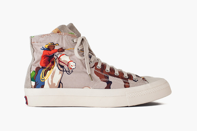 Japanese brand Visvim has released the latest version of their Skagway Hi silhouette. These new kicks are constructed using a chino fabric for the upper which incorporates an original cowboy illustration print. Other features on thes kicks are a cowhide suede heel chimney and tongue detail as well as a rubber outsole. The visvim Skagway Hi KAPA is now available at visvim’s online store for $570 USD……..Whoa!!!