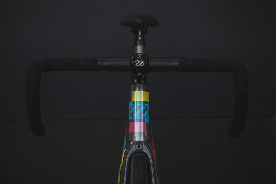 I’m diggin 8bar Bikes brand new KRZBERG v5 frameset! The first thing that caught my eye was of course the colorway of the frame and fork. I like the mix of vibrant colored rectangles over that glossy charcoal grey frame. The bike is also built for some aggressive riding with it’s unique geometry, it’s not just built for show…..that’s wassup! The frame is made out of double butted 6066 lightweight aluminum and the forks are fully tapered carbon…talk about light and stiff sun!! This wip comes in three different colorways: matte ghost black, polished raw and the new 8bar team edition. All frame sets include a tapered 8bar aero carbon track fork, a 8bar SUPER A-Head set and a seat collar.