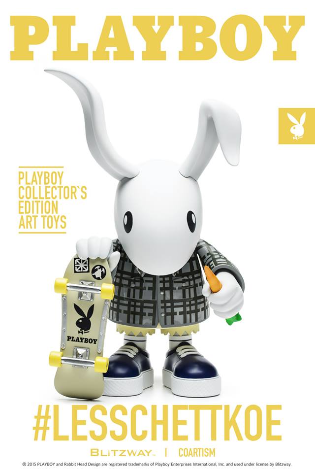 I’m diggin this 60th Anniversary collectors edition art toy done by artist Les Schettkoe. Les took the iconic bunny and flipped it into an OG skate bunny equipped with a dope skateboard with the Playboy logo on the bottom and some yellow wheels. The skate rabbit is also holding a carrot in his hand.