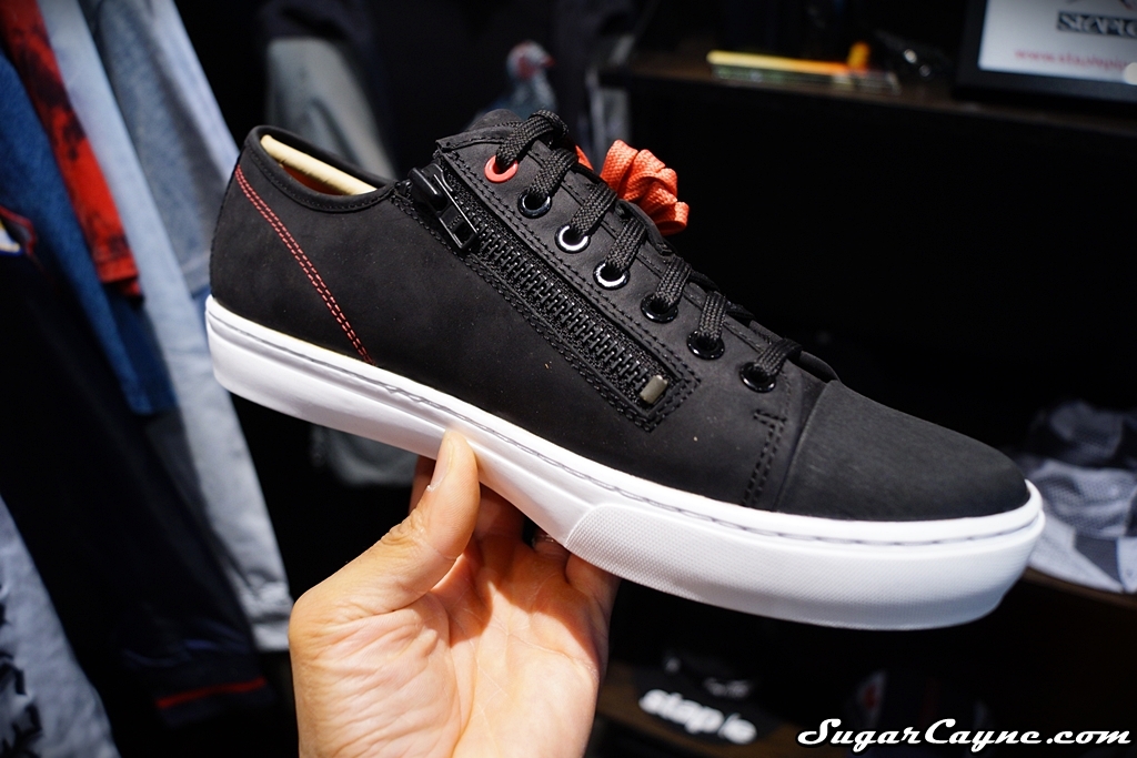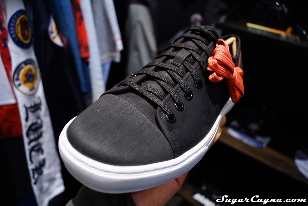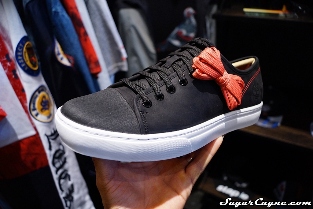 One of the first dope sneakers I saw at the Agenda Show NYC was this black, Lace OX kicks at the Staple booth. These joints are part of Staple and Timberland’s collaboration called the Polar Night Collection and they look fresh! These kicks look so smooth but don’t let the smoothness fool you, these joints are made for shredding! The Lace OX is made of premium full grain leather, Timberlands exclusive anti-fatigue technology and a Helcor scuffproof leather cap for extra protection. These kicks even have a zipper so you can easily take em on and off. Another cool feature about the Lace OX is the lining is 100% made from recycled  plastic bottles….. pretty cool! These kicks will come in Black, White and Pigeon Pink, be on the lookout for these this spring!
