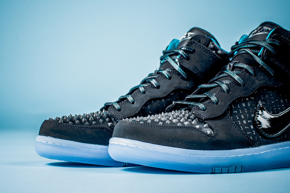 Nike has been releasing some really dope footwear treats this year and these new CMFT Premium All Stars are another addition to the list! The kicks feature multiple studs of different sizes on the toe box and heel support. The kicks also feature numerical, Matrix style coding print on the side panels, matte black base, shiny patent leather Swoosh and glacial gel bottom. With all that stuff going on on the sneakers they still look tight!