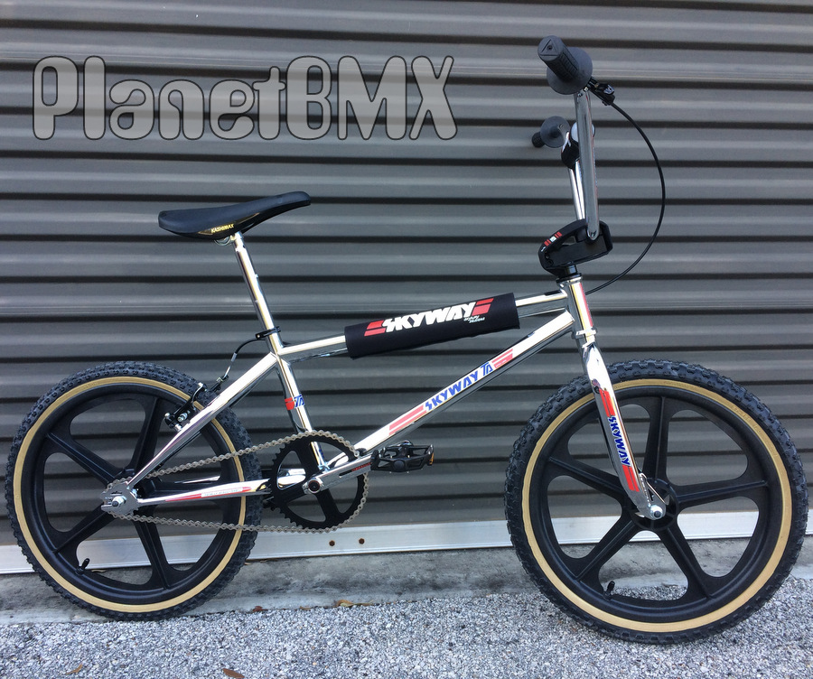 The good folks at PlanetBMX.com are always doing cool stuff with their BMX inventory. And for the latest cool thing they’re making the 2013 20″ Skyway T/A XL Retro available as a complete! The bike features the T/A frame, fork, bars, Skyways pads and of course Tuff Wheels! I love the classic chrome/black colorway but you can also get the bike in the PlanetBMX exclusive BLUE, and RED. colorways.
