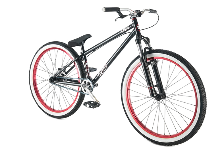 While I was browsing the internet for some fresh new 2015 bikes to show on the site I found this dope 26″ dirt jumper. It’s called the “Fiend” and it’s made by a company called Radio Bike Co. I’m digging the black red and white colorway on this bike, you can’t go wrong with white wall tires. I’ve never heard of Radio Bike Co. until today and I couldn’t find any real info about the company except they’ve been making bikes since 2012. They have a cool website and a nice sized team of riders that they sponsor too. Check em out at RadioBikes.com