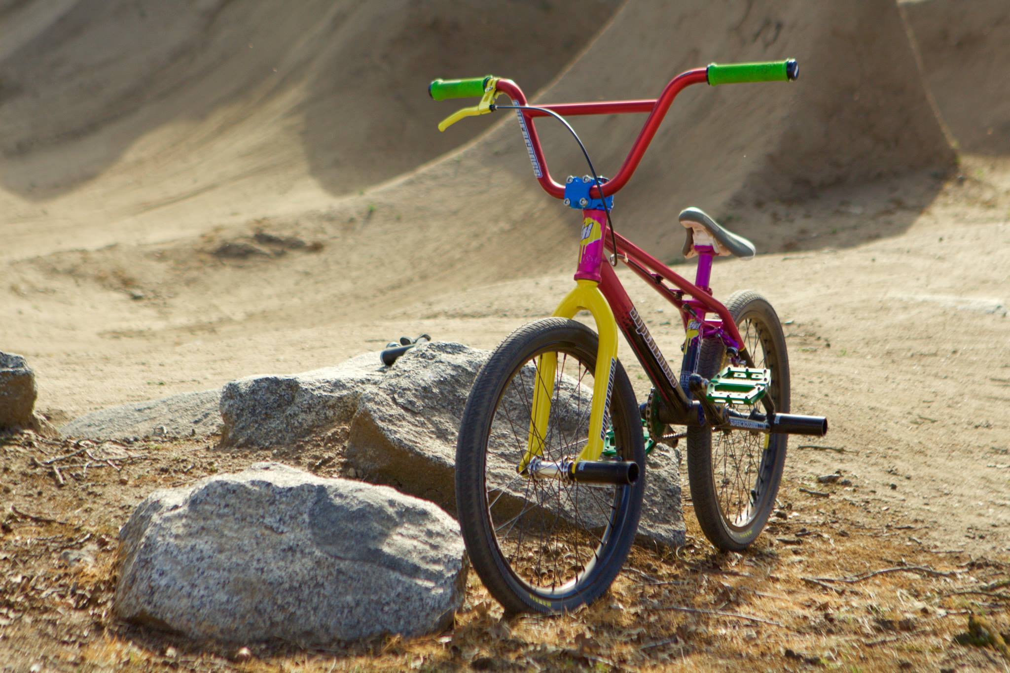 I saw a photo of this retro inspired BMX freestyle bike posted on the Supercross BMX Facebook Page. It a sick looking bike with the classic twin top tube design that was seen on so many bikes from back in the day. I love the wild combination of colors on this bike too, I’m not sure how neon green grips, a blue stem and yellow fork go together but they do in this case. According to Supercross, the bike has all modern geometry but that’s all they’re saying about the bike.  The bike is also laced with Supercross decals all over it so the big question is, is this bike going into production? Is the world renowned BMX racing company Supercross getting into the BMX freestyle game? Your guess is as good as mine. Stay tuned for more info.  Ok so I just checked out Supercross’s website and totally didn’t know they made a line of freestyle bikes lol. The frame in the photo is actually called the “Extension”:
