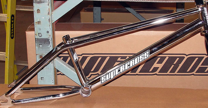The Supercross Extension frame is based off of our popular Passion Freestyle frame, but has an old school throw back with it’s dual top tube design. It is a Full Seamless Cro-mo construction with a full post weld heat treat. The Headtube is a Cro-mo Campy Integrated with a CNC’d SX logo on the front. BB is a CNC’d Cro-mo MID Shell. Dropouts are Backside CNC’d Laser Cut Cro-mo. The Extension, like the Passion has all removeable brake hardware and gyro tabs. it is available in 4 size, 20.5″, 20.75″, 21″ and 21.25″ TT lengths. Colors are Chrome, White, Neon Green, Radberry and Inferno Red.