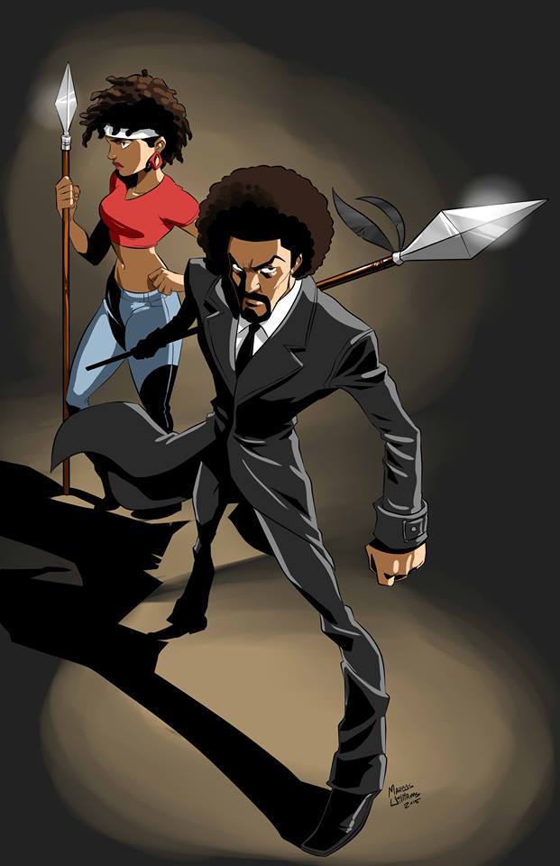 There are many awesome illustrations of Jay Kelly’s comic book character “The Brother“. This latest illustration of this dope character and his sidkick Imani was done by Marcus Williams and it looks amazing, I’m loving it!