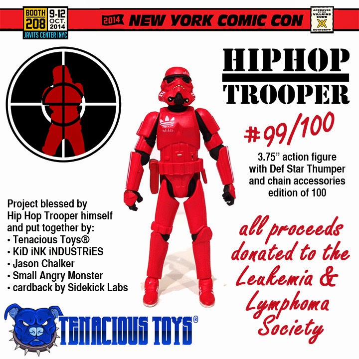 Tenacious Toys have set aside 3 of these cool figures to be auctioned off to benefit a variety of charities – Hip Hop Trooper #100/100 has already sold, with 100% of proceeds from that auction sent to The Breast Cancer Research Foundation – Now, Hip Hop Trooper #99/100 is being auctioned to benefit the Leukemia and Lymphoma Society.