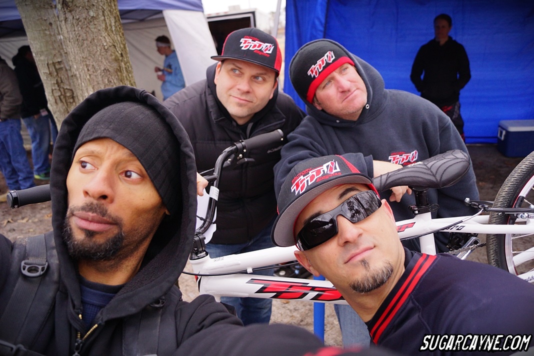 At the 21st Annual Jack Frost Race at Egg Harbor BMX in Jew Jersey, the TNT Bicycles team was in full effect with a big tent and the bikes on display. They even had those jet heaters to take away the chill from the cold day 🙂 Our friend and super fast rider Chris Diaz is back on the TNT team and he was at the event so you know I had to get him to do a bike check of his C-Four. He even did some co-hosting for SugarCayne and introduced us to team member Mike Noland, TNT Team Manager Chris Gough and the man behind it all TNT Bicycles Owner Mark Zalewski.