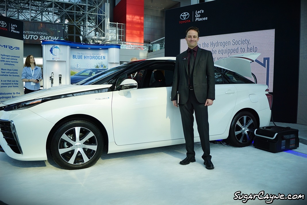One of the first car I got to check out at the 2015 New York International Auto Show was this cool Hydrogen Fuel Cell car by Toyota called the Mirai. This car with be the first mass produced Hydrogen Fuel Cell vehicle and it has some really cool features. Not only does this car run on renewable energy and leaves nothing behind but water you can also use it as a generator to power your house! Yep that’s right the “Power Out” port literally turn the Mirai into a rolling electric generator. It can power the average home for up to a week with both onboard hydrogen tanks filled, that fact right there makes me want this car! .In the video above Toyota rep Chris told me all about the Mirai and some of it’s features.