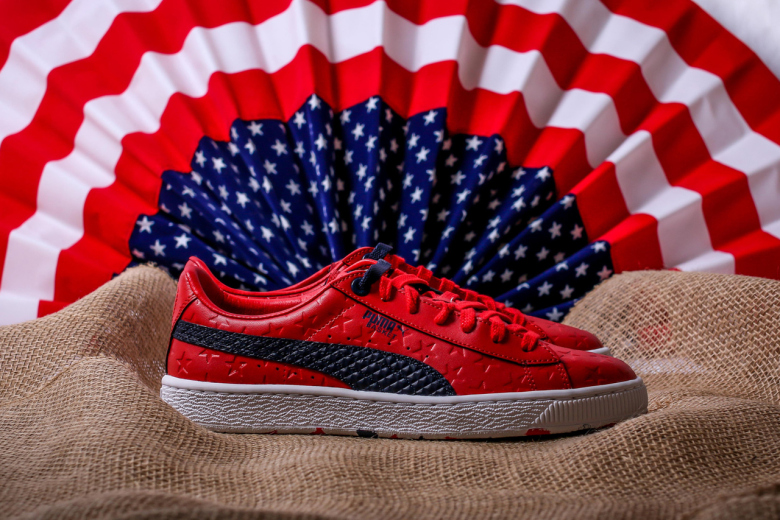 The folks at Puma keep dropping some banging footwear treats and this upcoming independence Day Pack release is definitely gonna be flying off the shelves like hot cakes!! The colorway says it all in this three-shoe pack in celebration upcoming Independence Day. The pack consist of two editions of the basket silhouette and one star silhouette, the kicks feature a premium leather upper with embossed stars all over. They’re sitting on a white rubber sole with a marbled out sole. The kicks come is a red, white or blue colorway, naturally….I’m liking that blue pair the most though. The PUMA “Independence Day” Pack will be available starting June 5, now you know!