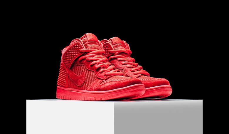 Nike just released a knock off of their own Air Yeezy 2′s with this new version of the Red October kicks. The Nike Dunk High has obvious similarities to the Kanye-designed shoe like the full tonal red suede and nylon upper, with a textured, star-embossed ankle and heel collar. The one thing that’s far from similar to the Yeezy’s is the price tag of $120 USD. You can cop these kicks from RISE