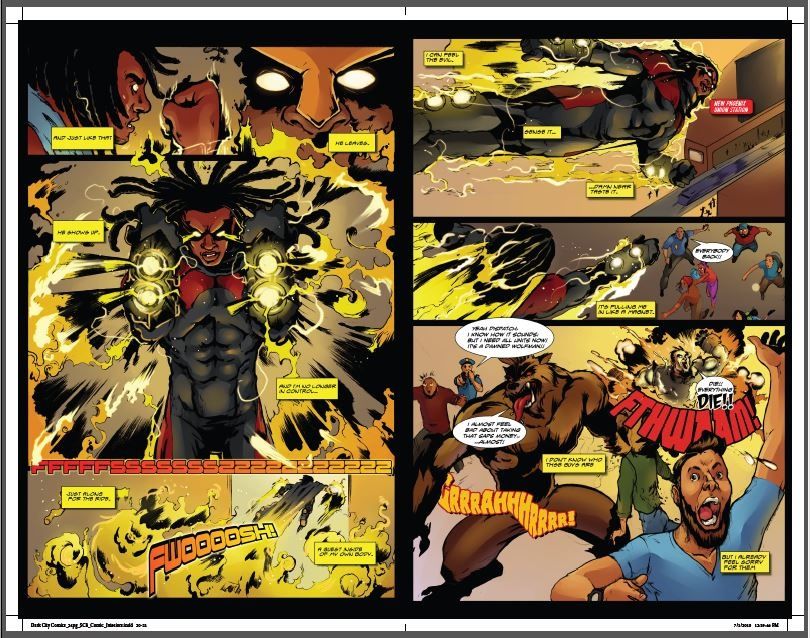 “Our hero arrives home just in time to realize he’s not alone. After an open call to all Alpha Humans is made by Lavace, humanity soon realizes its place on the food chain. A new race has birthed on our planet seemingly underneath everyone’s noses. Which side will you choose as the world begins to divide right before your eyes? Can our young hero maintain focus long enough to show humanity that they have a true champion who will fight on their side? Find out as this issue unravels changing the world as well as the universe around it.