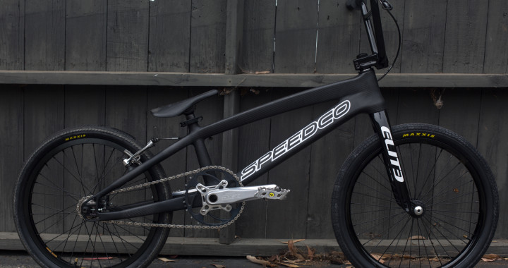 “Without further ado, we’re so stoked to introduce to you the Speedco Velox carbon. This is the first build, and although we don’t have a scale on hand for the complete, we can tell you the raw frame (21″) is 2.8lbs. It features a BB86 shell, 73mm to 65mm massive tapered down-tube, tapered head tube, internally routed cable, and a 15mm dropout with integrated chain tensioner. This is the Pro XL, and it will also be available in Pro and Pro XXL (20.5 & 21.75) in November. Closely following the pro models will be the smaller version of the carbon in Junior, Expert, and Expert XL which are 18.5″, 19.25″ and 20″ top tubes. Retail on these frames is around $1100.00, and will be available in three different colorways to start. We’ll post a sample of the graphic packages soon.