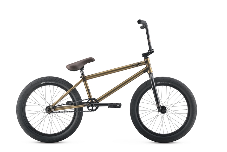 We’re diggin the KINK 2016 Solace Hamlin Signature series complete BMX street bike. The Gloss Trans Gold colorway gives the bike a raw look that also stands out of the boring crowd of black BMX street frames. The top tube is a short 20.666″ so pulling this wip over obstacles should be a breeze. The head tube angle is a steep 75.5, perfect for those g-turns and nose manuals. It’s also pretty lite at 23.7 pounds… not bad.