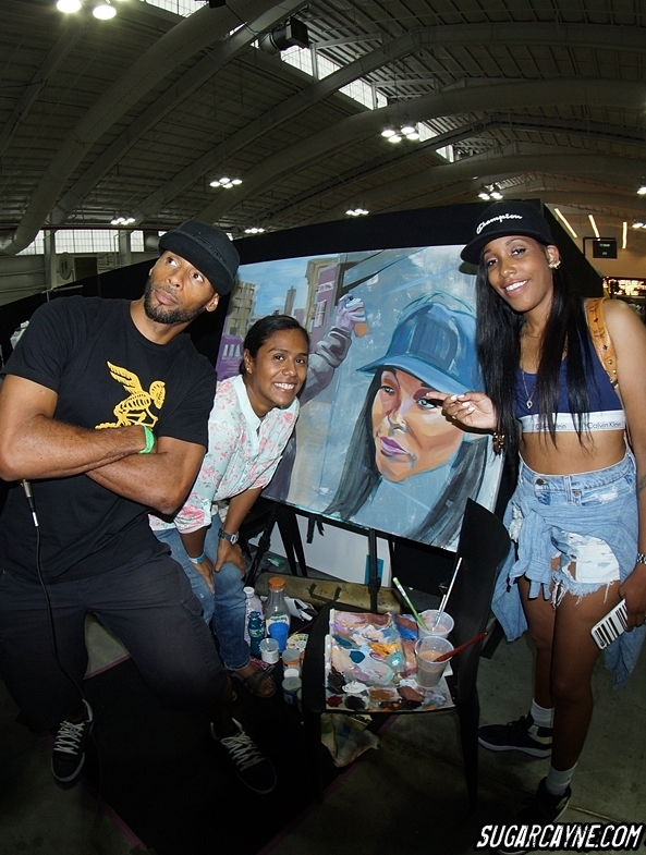 Talented painter Marthalicia Matarrita was commissioned by the good folks at Champion to do some live painting at their booth at The Agenda Show NYC earlier this summer. Crazy Al Cayne got to kick it with her briefly about her painting, which by the way is a self portrait of her tagging a wall with the image of rapper Raven Sorvino.