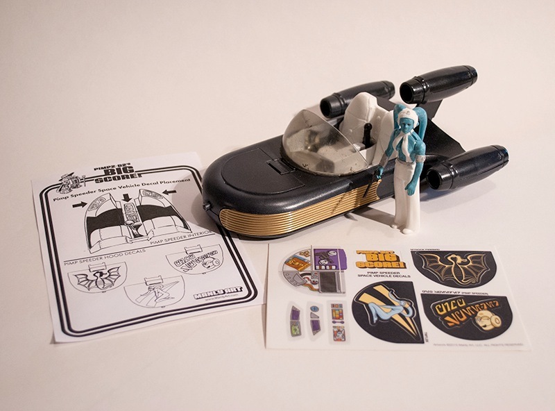 We’re loving this “Pimp2D2’s Big Score: Pimp Speeder” by creator Jason “Manly Art” Chalker! Each speeder is a re-purposed vintage 1970s Kenner Land Speeder with custom cast resin windscreen and custom resin seats. The set comes with a custom Chauffeur action figure, sticker sheet, and instructions.