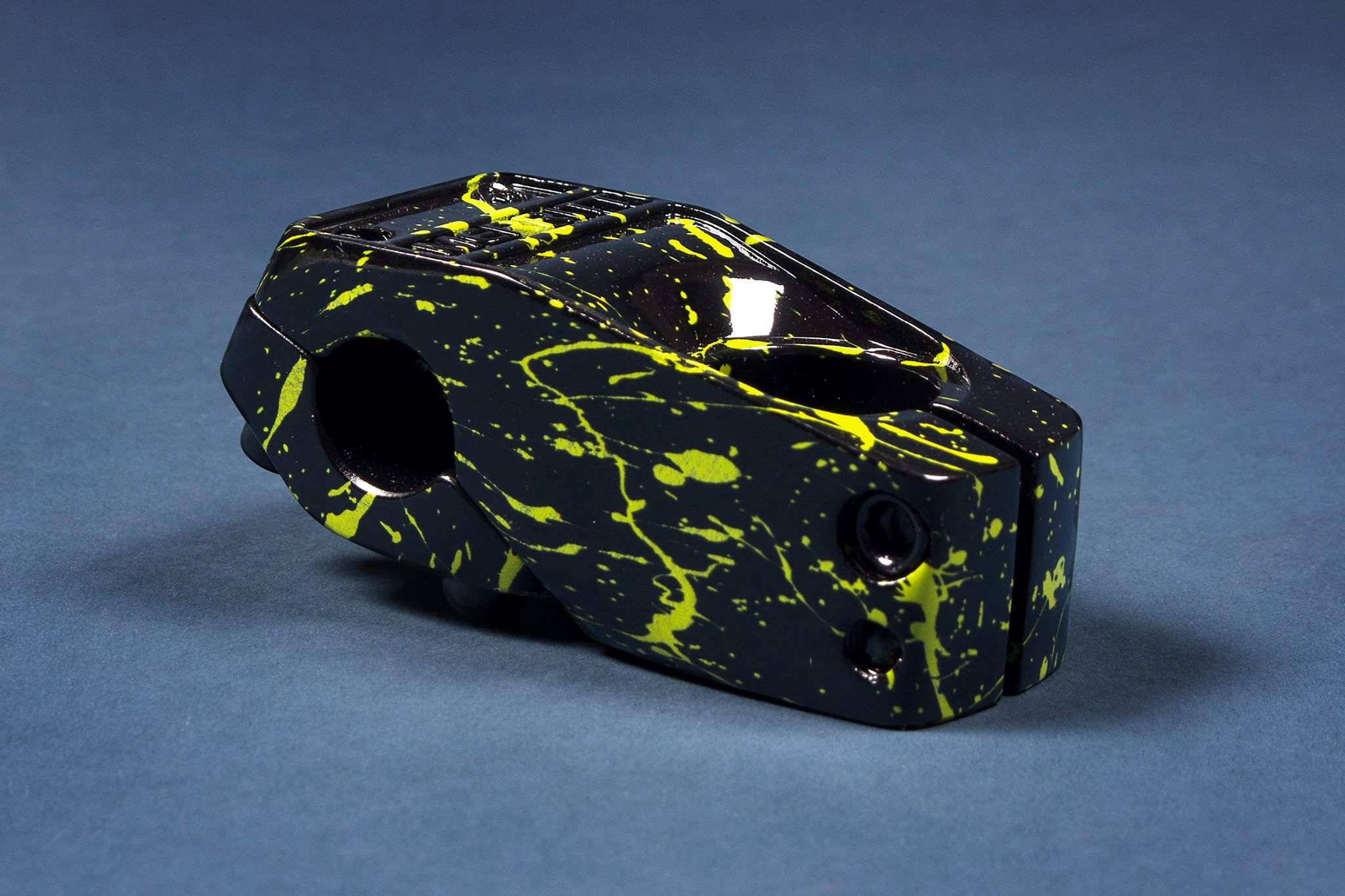 The creative folks at Merritt BMX recently posted some photos of their new Neon Splatter Colorway on their components and we’ loving it! The brands popular Justin Care stem got the Neon Splatter treatment and it looks extra spiffy.