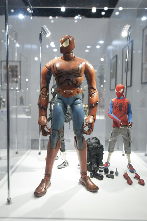 The super talented creative forces at ThreeA and Marvel Comics linked up for two sick Spiderman inspired figures. The big Spiderman figure seen on display at this year’s Toysoul convention is a more mechanized, robotic version called the “Spider-Bot”! The “Spider-Bot” rendition of “Spider-Man” is controlled by a “Peter Parker” figure which is featured in a more urbanized, homemade costume than the normal spidey outfit.
