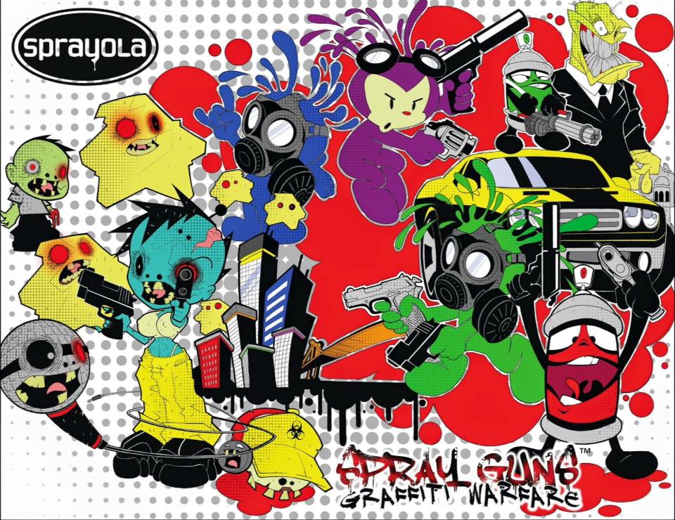 Samal World-McNealy is a huge fan of street art, graffiti motifs and zombies, so he has combined the two in a new ambitious comic book called: SPRAYOLA®: Spray Guns Graffiti Warfare™! He also has a line of toys figures to go with the comic on the Spraoyla Website