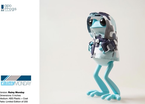 We’re digging this cool hooded frog figure by twelveDot called “APO Frogs”! This one in particular is called “Rainy Monday” which features a baby blue colored Apo Frog with a matching baby blue/grey/white camouflage hoodie. The figure was so popular it already sold out.