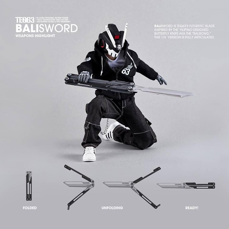 The Balisword is our futuristic sword take on the Filipino-designed blade, the “Balisong”, more commonly known as the Butterfly Knife. Our 1/6 version is fully articulated and transformable!