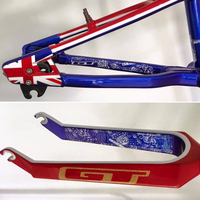 More photos are surfacing of the Olympic BMX competitors custom builds! Great Britan’s Liam Phillips posted photos of his GT Bikes “So British” Speed Series custom bike for us to all drool over.