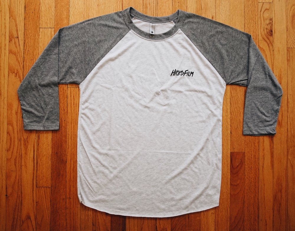 Popular BMXer, videographer and vlogger John Hicks started making his own apparel for his Hicks Films brand! We’re really diggin the Circle Logo Premium Baseball Shirt which features grey/white colorway. On the back is the Hick Films “HF” circle logo and on the front “Hick Films” is printed on the upper left.
