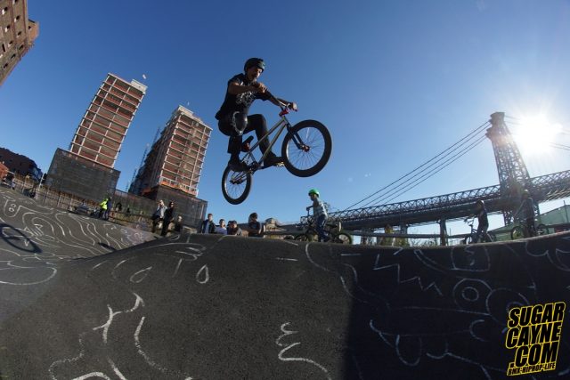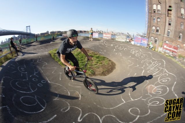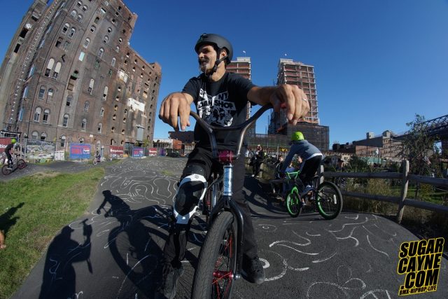 The Fromm family invited Crazy Al Cayne to come out to Velosolutions Pump Track Brooklyn for a private birthday party for for thier little one Sofia. It was a great event with tons of kids enjoying the track. For the big surprise BMX icon Mat Hoffman AKA “The Condor” came through to ride with the Sofia and the kids. We got a few shots of Mat hitting the hip and taking “Look Away’s” of course.