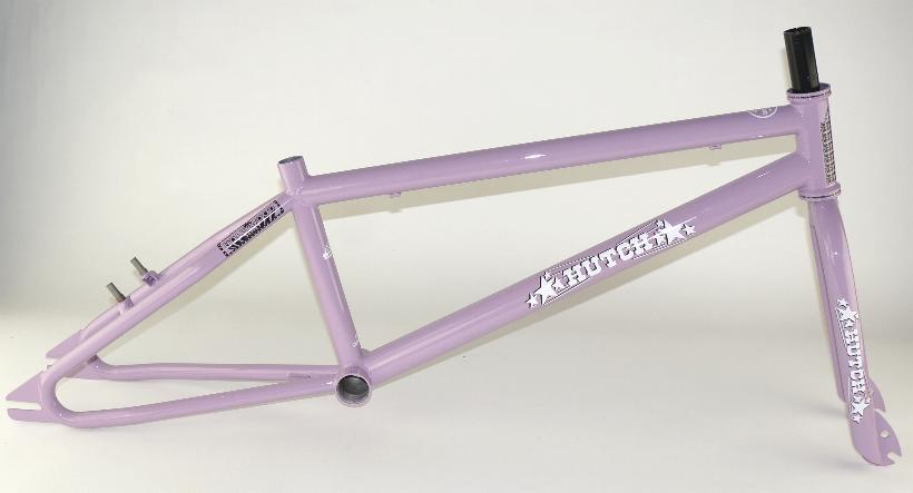 Everything you know and love about Hutch styling, with all technology and geometry updated for today’s race tracks. 4130 chromoly throughout, with a “Hollywood” lavender powder coated finish. Sold as a matched set of frame + forks.