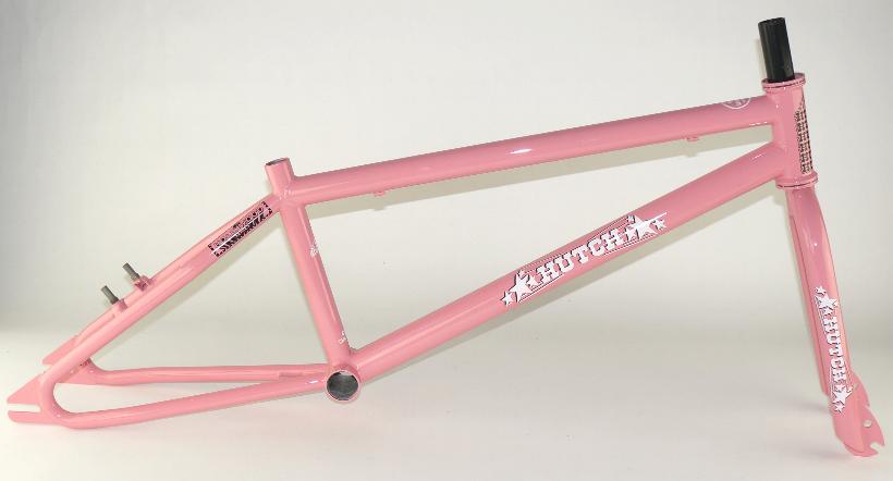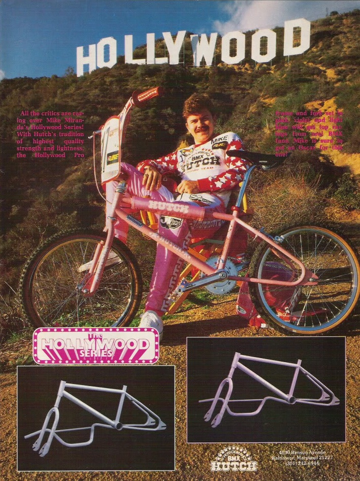 The folks at Hutch BMX appear to be resurrecting all their classic frames from back in the the day and updating them with modern day tech. The latest resurrection is the Hutch “Hollywood”. This was the signature frame of 80’s Pro BMXer Mike Miranda and everybody wanted this bike back in the day! The frame comes in both of it’s classic colorways, pink and lavender. They also kept the decals the same as the original and it still looks amazing!