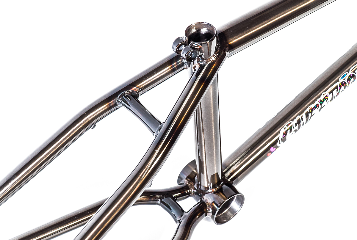 Popular Australian BMX brand Colony has a sweet street line called the “Sweet Tooth”! It’s actually team rider Alex Hiam’s signature series frame and it’s built for progressive street and park shredding. We’re loving the decals on this series with its colorful graffiti style lettering.