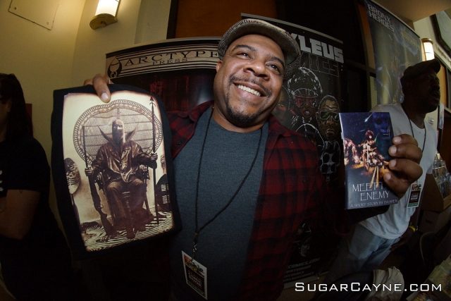 I caught up with author Da’Shen, owner of Arctype Press Publishing and C.F. Godwell owner of Nukleus Comics at the Black Comic Book Festival. They had a booth setup at the event showcasing their work. Da’Shen had his short stories and T-Shirts on display (Meet The Enemy, The Girl With The Magic Weave, The Atrophied Man, A Black Tomorrow) Â and C.F. had his comic “Boy From Planet A” comic book and t-shirts on display.