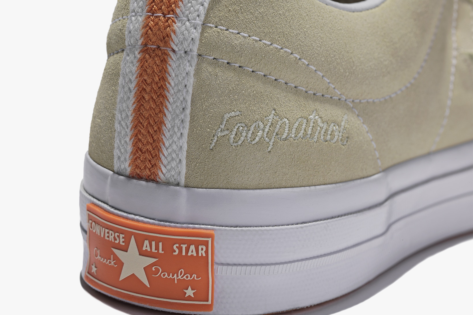 The creative folks at Converse has teamed up with London-based shop, Foot Patrol for a suede version of the One Star silhouette. These smooth kicks feature all kinds of nicely place treats on its suede upper. The One Star has a curb stone logo located on the rear side of the heel, an embroidered script that read “Foot Patrol” across the side heel. There’s also a set of custom printed laces that says “The Devil is in the Detail” written in orange. We’re really diggin the white and orange stripe in the heel section. Everything on these kicks works! Well done!
