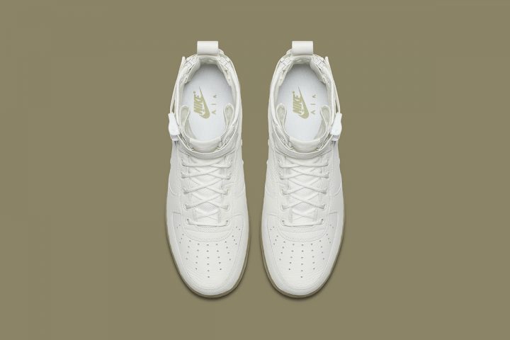 The folks at Nike recently revealed the SF Air Force 1 Mid in a smooth ivory and olive flavor. The upper on the kicks feature white premium leather on the front three quarters and a canvas ivory colorway on the back quarter of the kicks. The brands iconic swoosh logo isn’t on the side this time around just military-style tagging which is found on the lateral heel. Other features of the sneakers are the gusseted tongue, rope lacing, ankle straps and heel zippers which are really cool! All this flyness sits on top of a olive rubber sole which had “Air” embossed on it to round out the look of these kicks nicely!