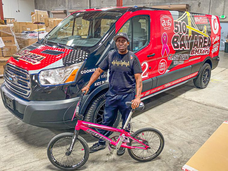 Howard Cato, founder of Bay Area BMXers recently got a new team van! He received this van after his original tam van was stolen. Howard’s been running a great community program for years, getting kids off the streets and on bikes. It was really sad and frustrating when we heard about his van getting stolen. But his hard work and good deeds for the community paid off when a good Samaritan blessed him with a new van! Not only did they give him a new van, they also got it wrapped! So Cool!